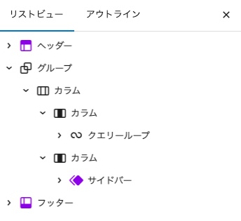 ⚠️ リストビューで構造を確認しながら進めましょう。意図しないブロックの中に追加してしまった場合は、リストビューでドラッグして移動できます。