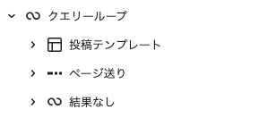 クエリーループを追加して最初に出る画面は、記事一覧の「器(うつわ)」を選ぶステップです。
